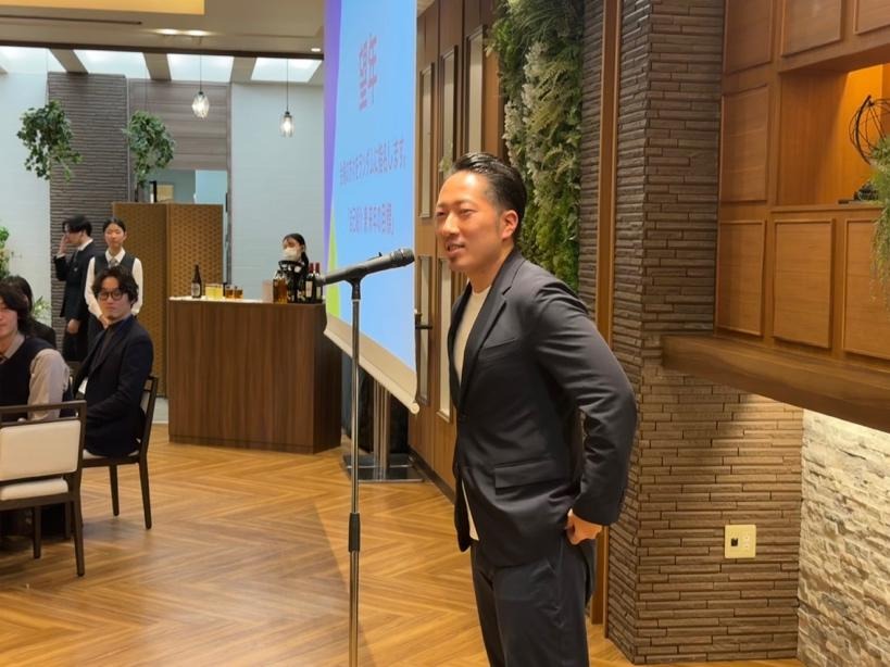 続いて乾杯にあたり、関西学院ベンチャー新月会 幹事であり、株式会社ミラタップ 代表取締役社長の山根太郎様より、乾杯のご挨拶を頂戴しました。